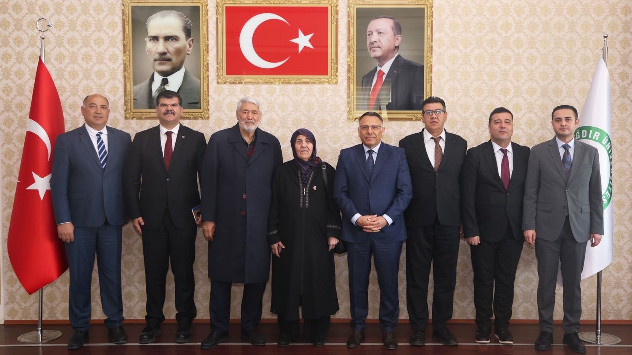 Rektörlük makamında gerçekleşen ziyarette, şehidimizin aziz hatırası bir kez daha yad edilirken ailesine duyulan minnet ve vefa duyguları dile getirildi.